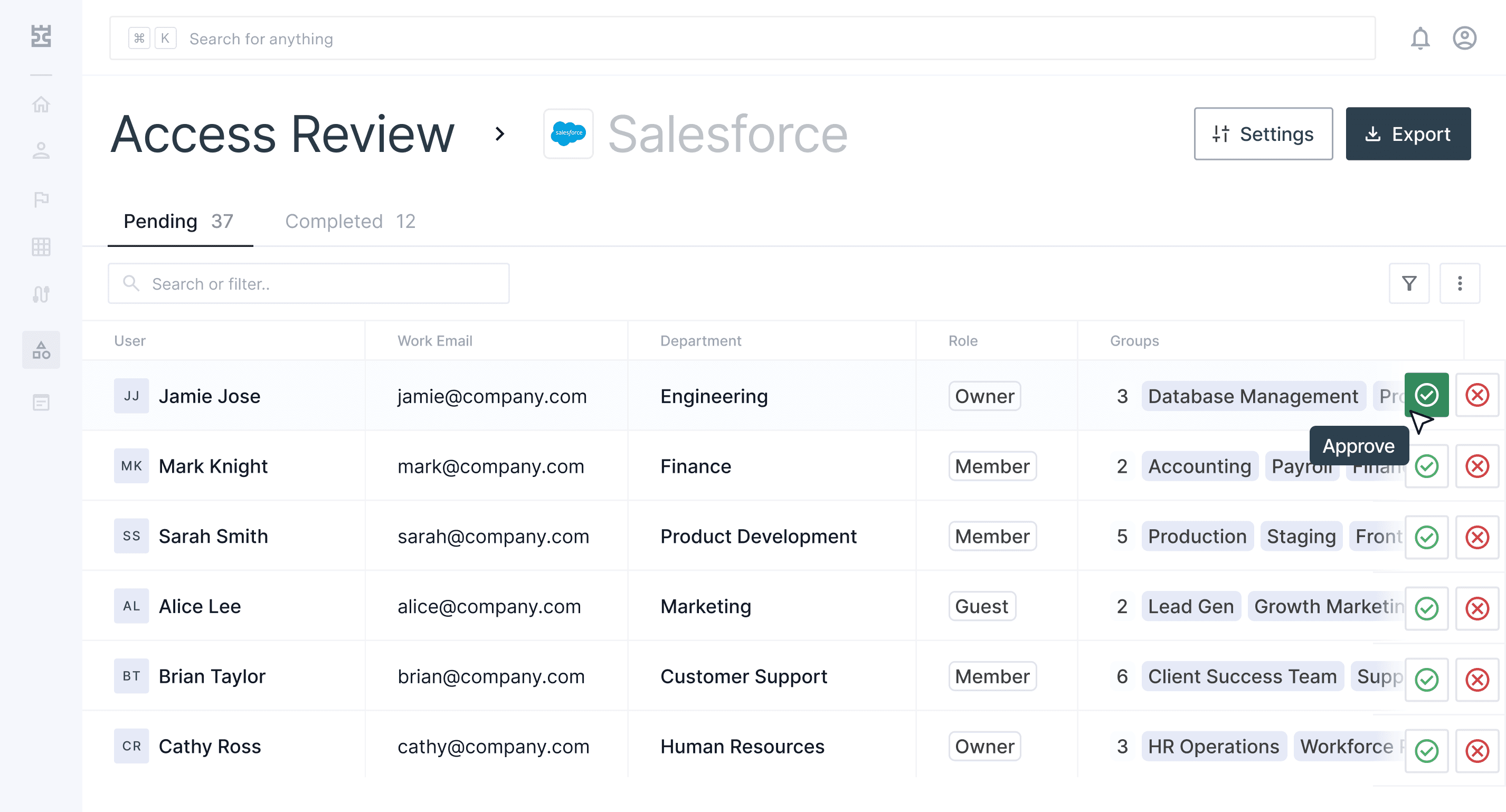 Make reviews actually work. Iden correlates data to surface real access gaps, your team adds context, you remediate instantly – compliance is the byproduct, not the goal.