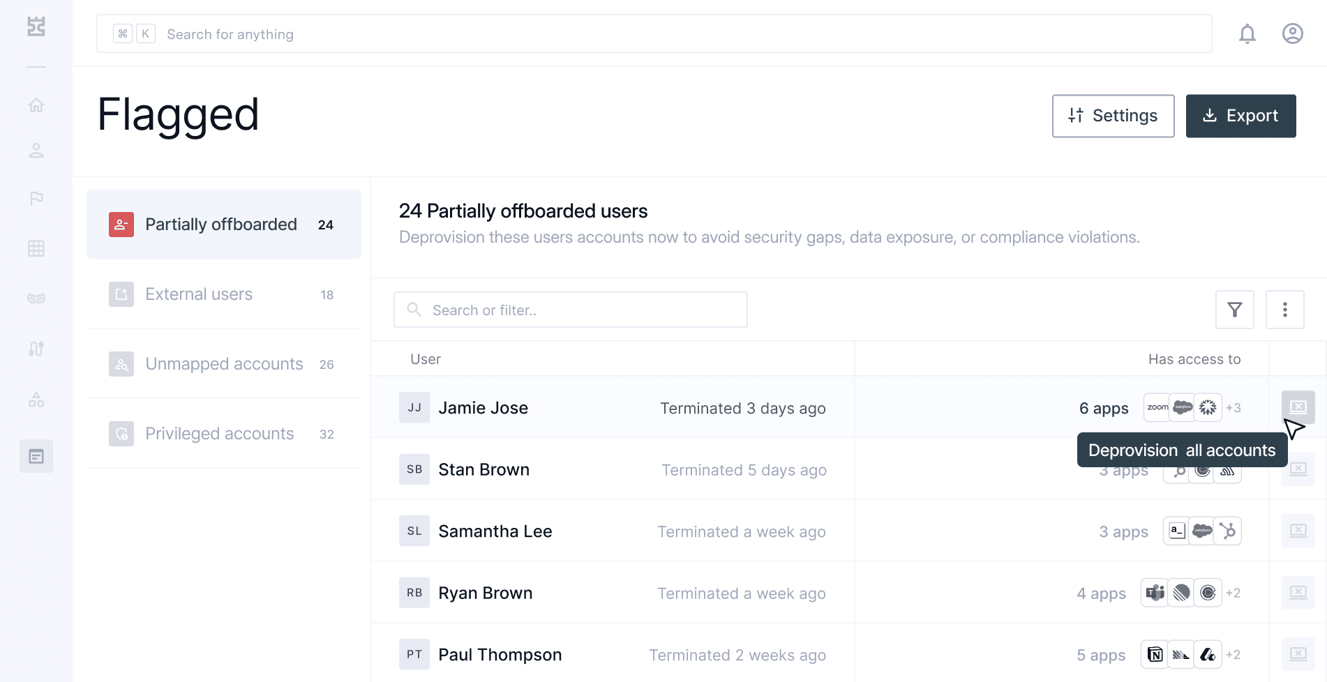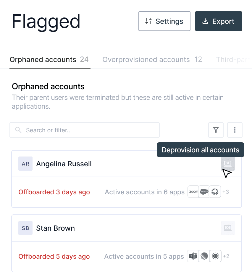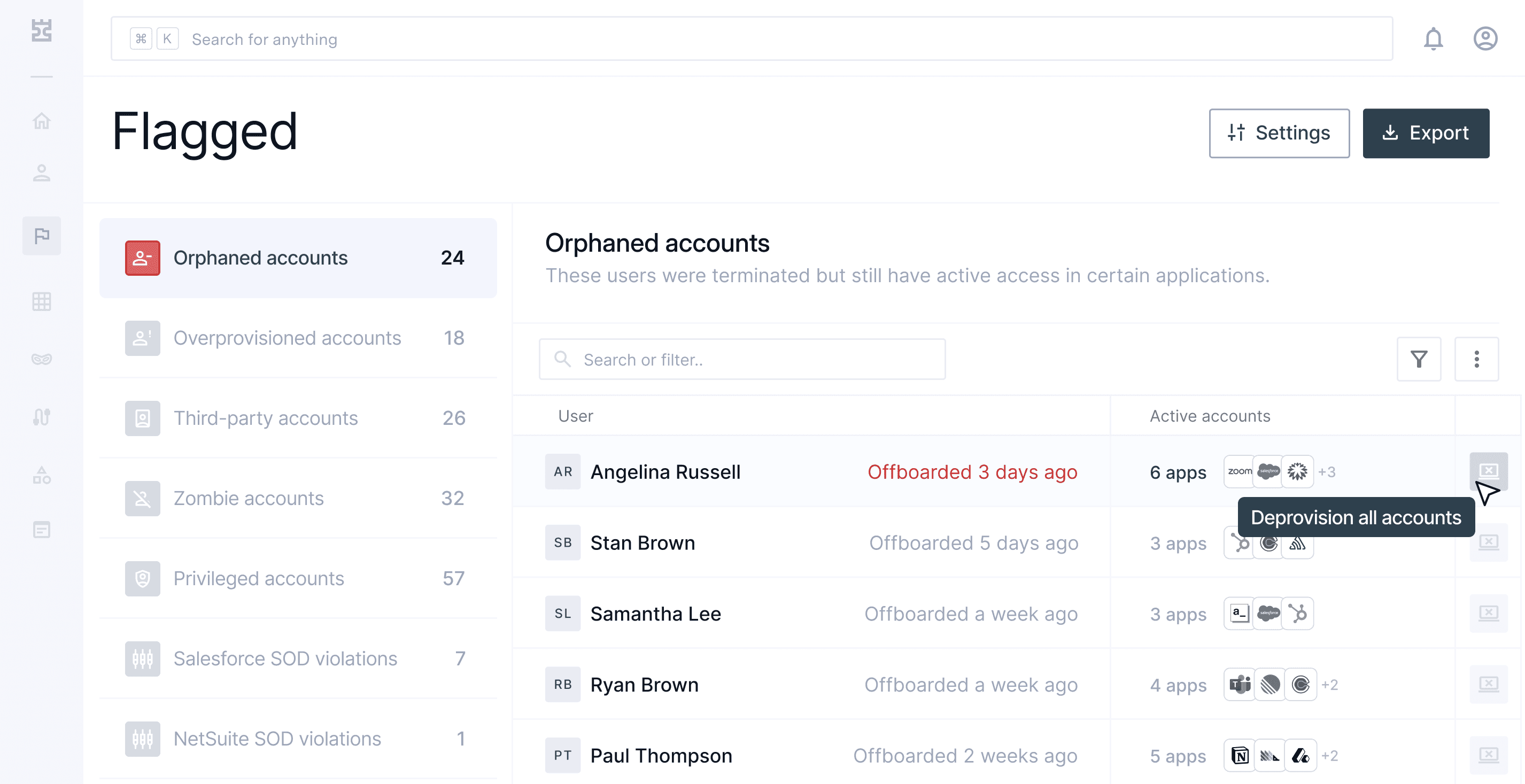 Orphaned accounts to overprovisioned access and everything in between – flagged in real-time for remediation, not months later.
